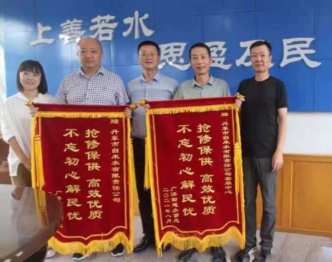 8月23日,廣濟街道辦事處及德馨園社區(qū)領(lǐng)導(dǎo)及用戶代表給公司送來了錦旗,以表達感激之情。